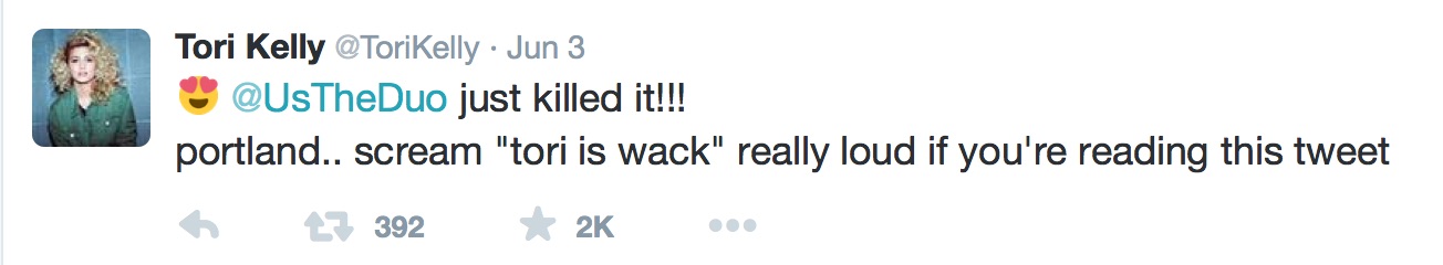 When Tori finally came on, the crowd went wild. She had been teasing us for hours on Snapchat and Twitter, tweeting out things like this:
